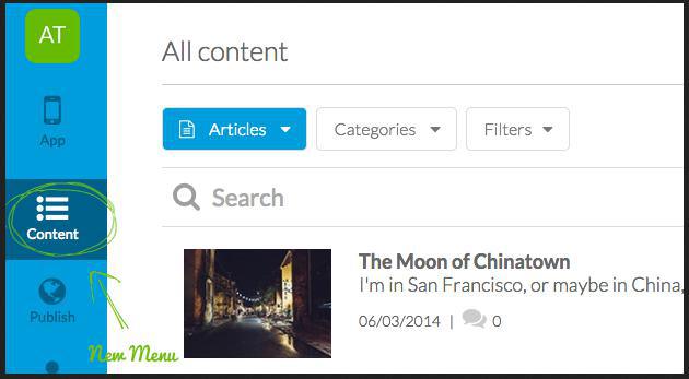 Ese menú contenido está diseñado específicamente para la gestión de todos los tipos de contenido que se pueden agregar en tu aplicación.