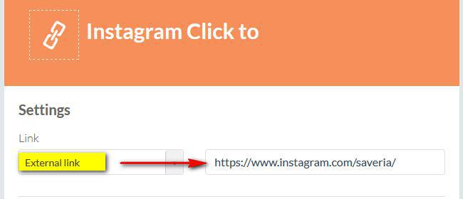 2 / Eliges enlace externo y luego rellenas tu cuenta URL de Instagram.