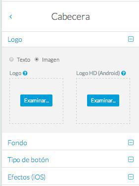 Para hacerse, ves dentro del menu App > sección elegida, pulsa en el icono del header, y "modifica el header de la sección" .